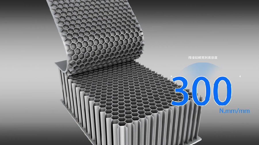 這是一項(xiàng)顛覆性技術(shù),解決了傳統(tǒng)粘接工藝存在的節(jié)點(diǎn)強(qiáng)度低、使用壽命短和環(huán)適應(yīng)性差等痛點(diǎn),拓展了鋁蜂窩三明治板應(yīng)用領(lǐng)域,實(shí)現(xiàn)了該材料在低溫、高熱高承載及復(fù)雜工況下的應(yīng)用。